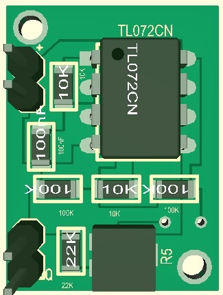 Achte auf die Versorgungsspannung des TL072 (typisch ±12 V bis ±15 V).